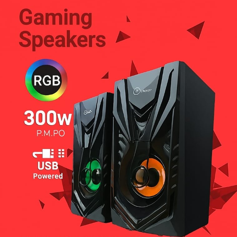 etouch® K1 Gaming Speakers. Diseño futurista con iluminación RGB. Sonido envolvente con 300W P.M.P.O. Alimentación USB: sin complicaciones, sin adaptadores.